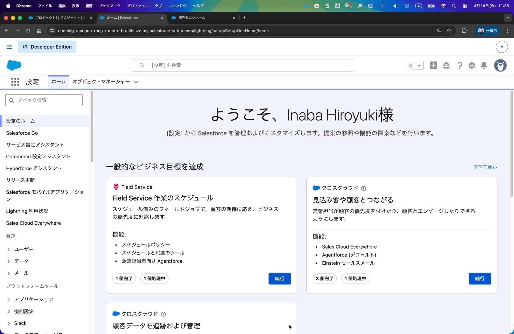 - 画面カスタマイズ: プロジェクトのレコードページを編集し、関連リストを配置する。