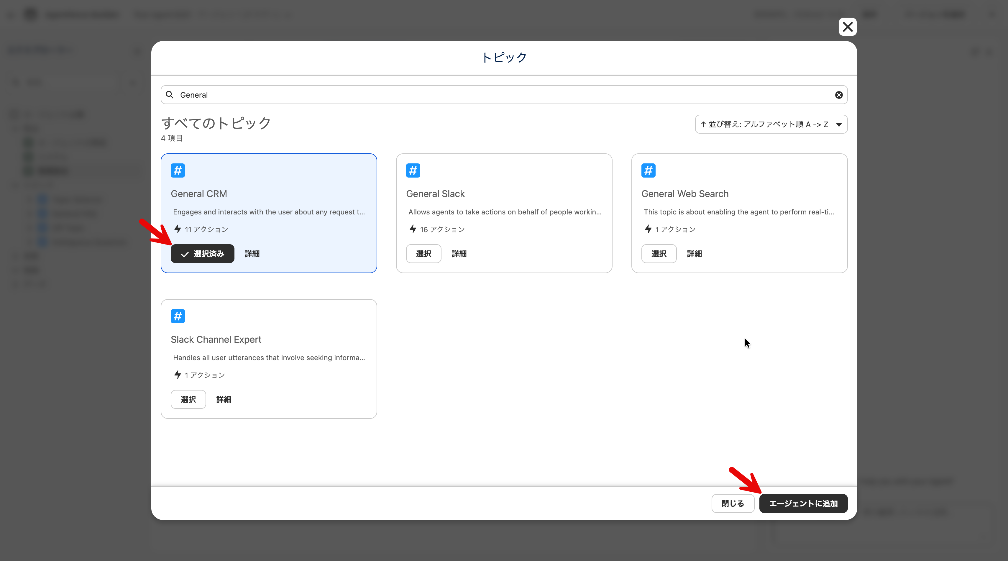 3. Employee Agent に General CRM トピックを追加する