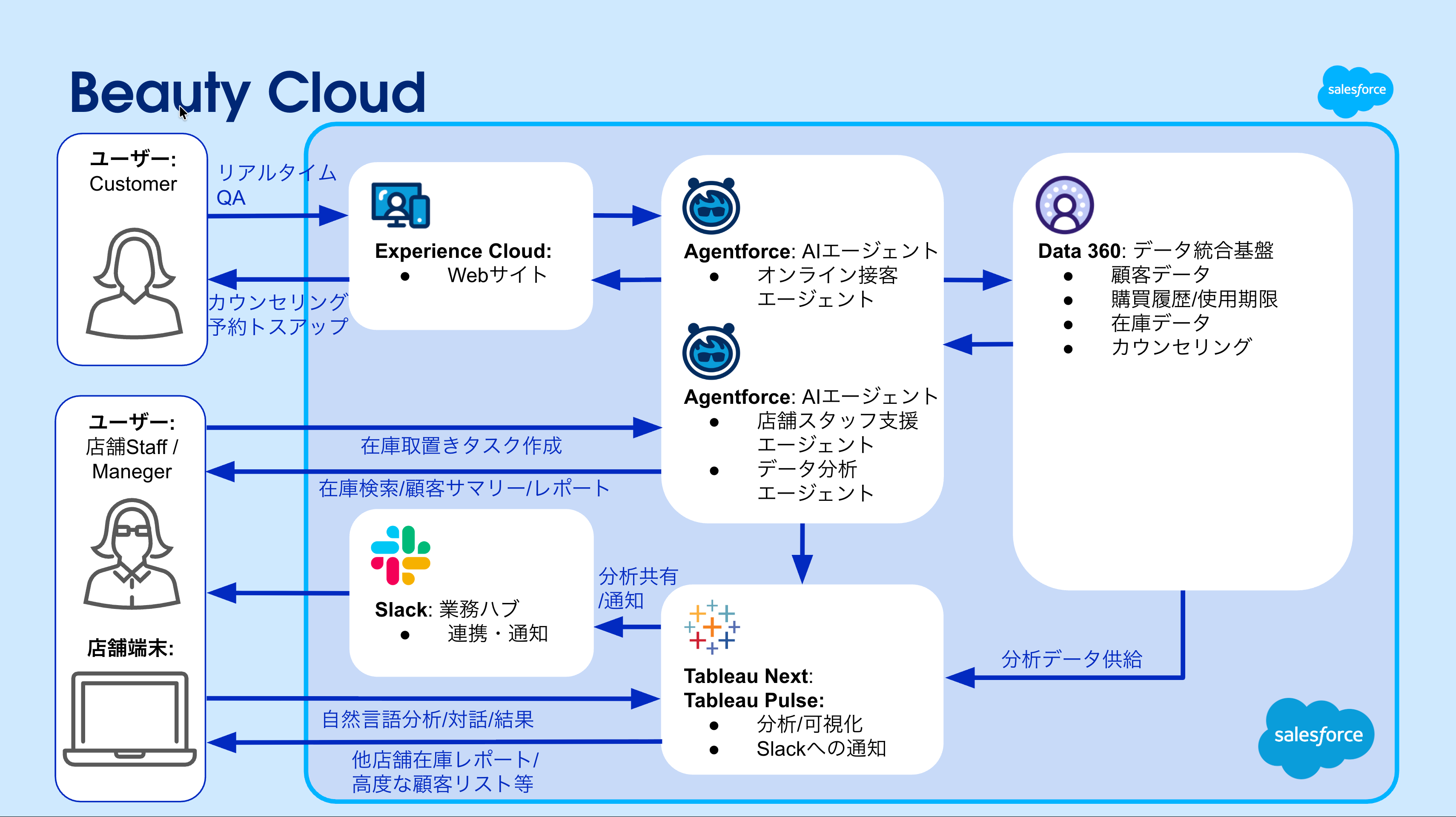 リテール業界に限らず、データ分断や属人化に悩む多くの業界にとって、Agentforce と Salesforce エコシステムを活用したこのアプローチは大きなヒントとなるでしょう。
