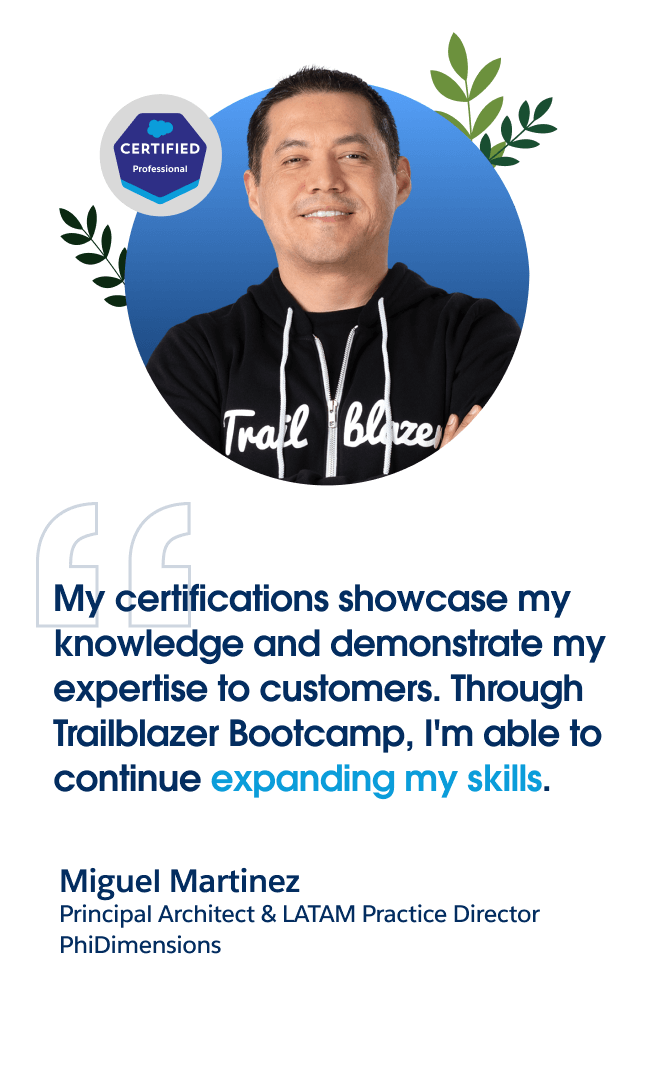 Thought leaders, product experts, and passionate Salesforce professionals. All at Austin's first-ever all-inclusive Trailblazer Bootcamp. Get ready to eat, sleep, and breathe all things Salesforce in our 4-day interactive, hands-on learning retreat. Get inspired, spark innovation, and build the skills to transform your business.