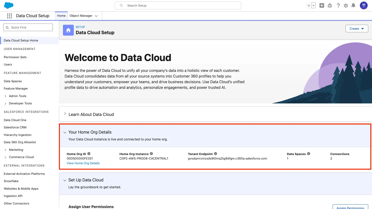 Before you begin, confirm that Data 360 is provisioned in your org.