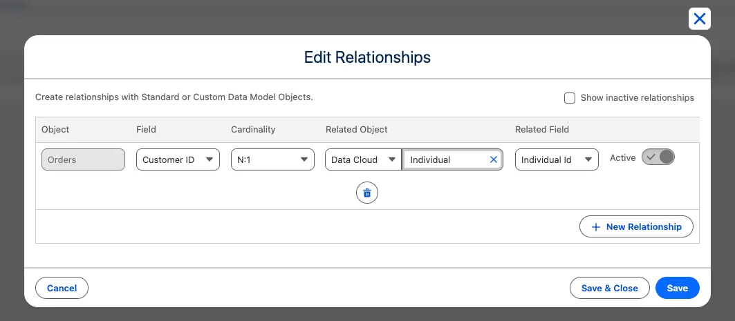 Field Value Field Customer IdCardinality N:1Related Object IndividualRelated Field Individual Id