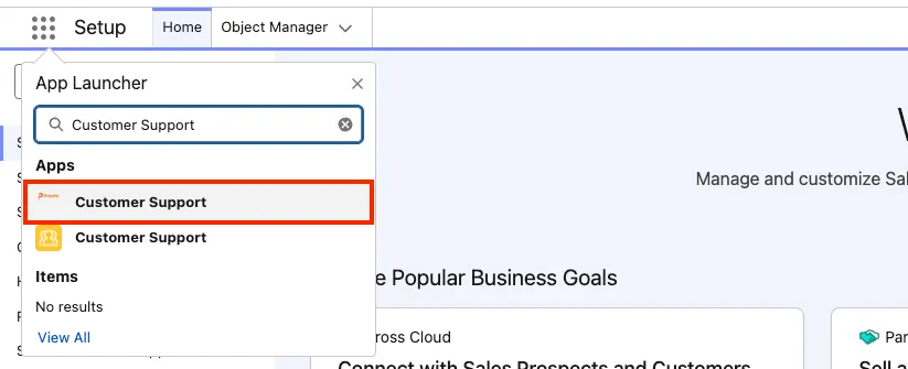 In the App Launcher, open the Customer Support app.