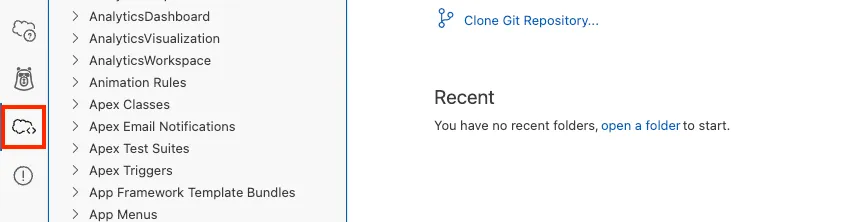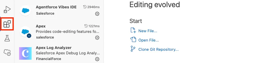 Open the Extensions Sidebar to confirm the Salesforce Extension Pack is installed.