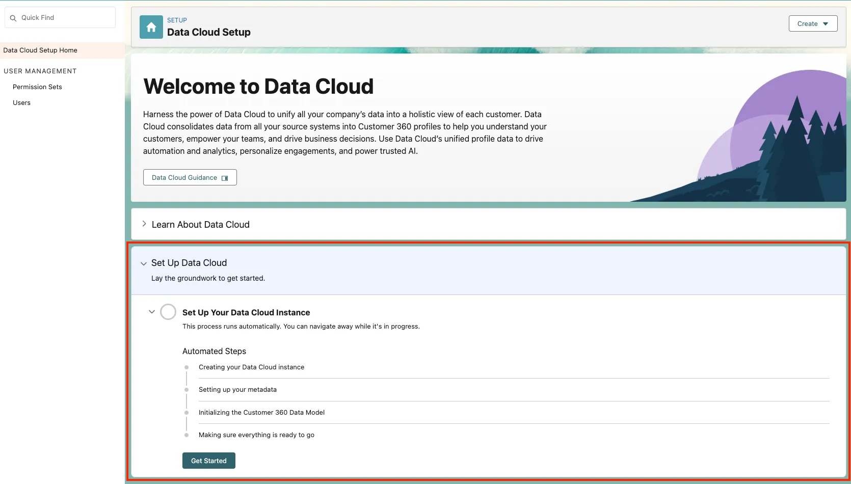 If the banner says Set up Data 360, Data 360 needs to be provisioned.