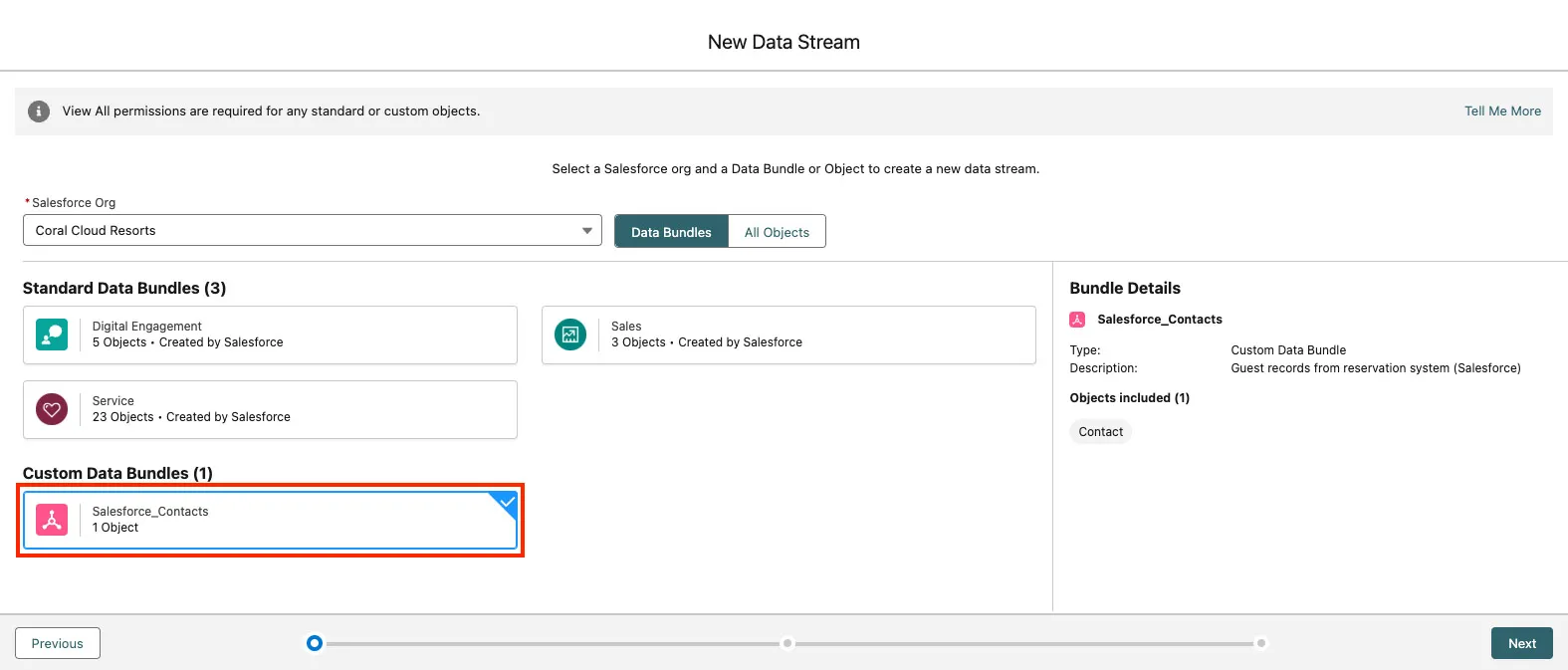 Under Custom Data Bundles, select Salesforce_Contacts, and click Next.