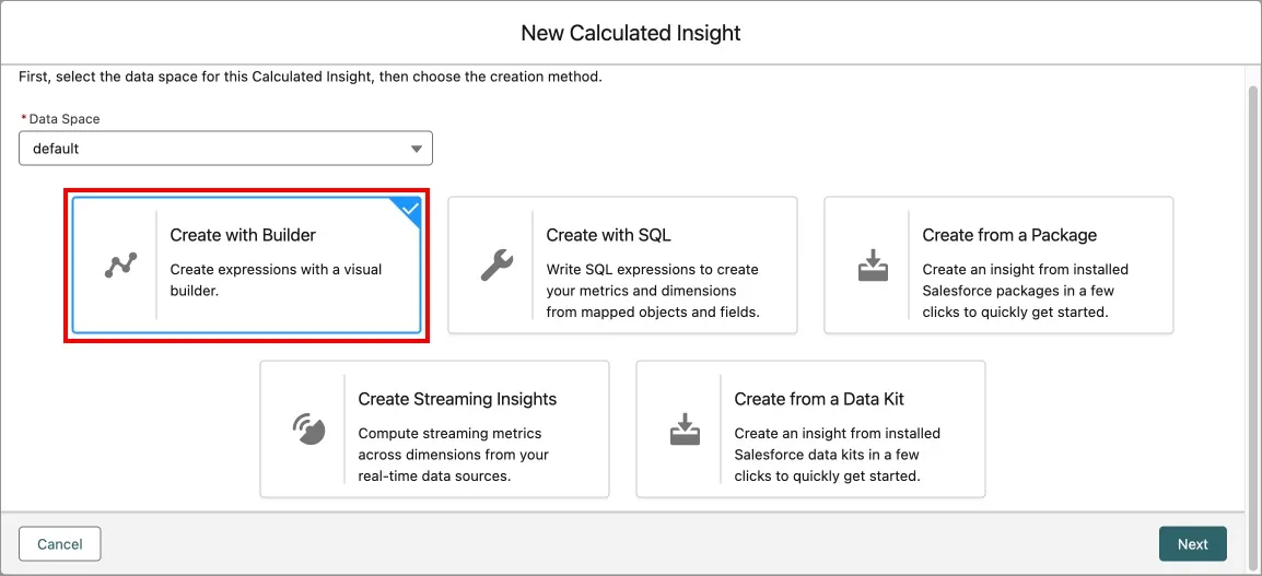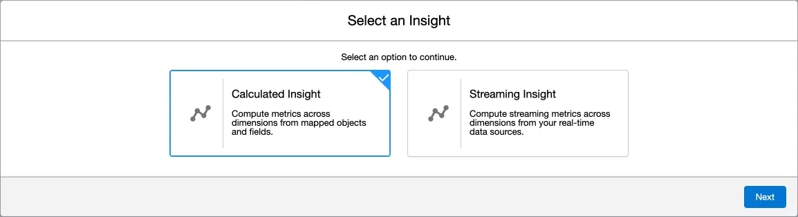 Keep Calculated Insight selected and click Next.