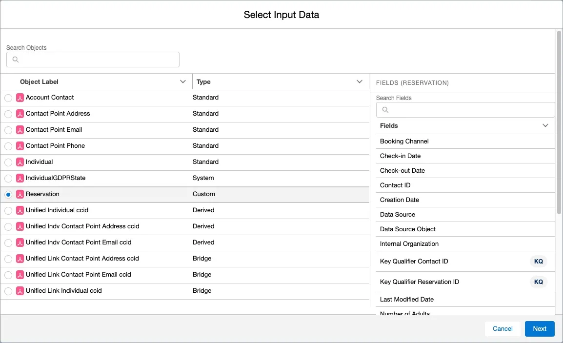 Select the Reservation Data Model Object, and click Next.