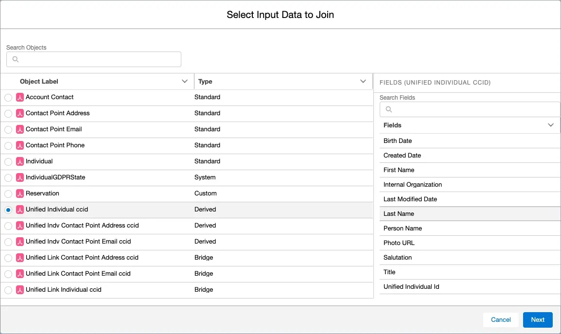 - Equipped with the Unified Individual Id, we can join to the Unified Individual ccid object, which provides access to the unified customer profile.