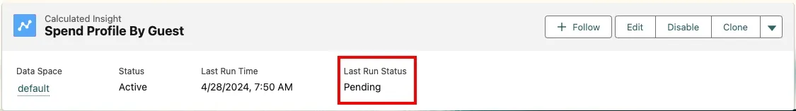 Make sure that the status of your Calculated Insight is Pending.