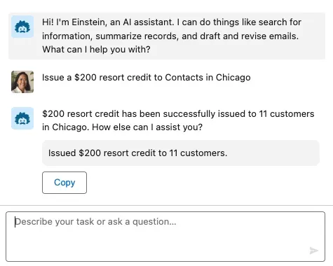 txtIssue a $200 resort credit to Contacts in Chicago