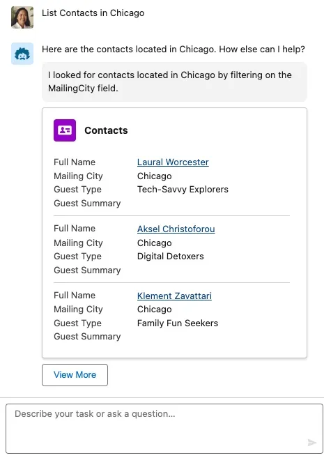 Take note of the name of one of the contacts. In the Coral Cloud app, search for that contact and open the corresponding contact record page.