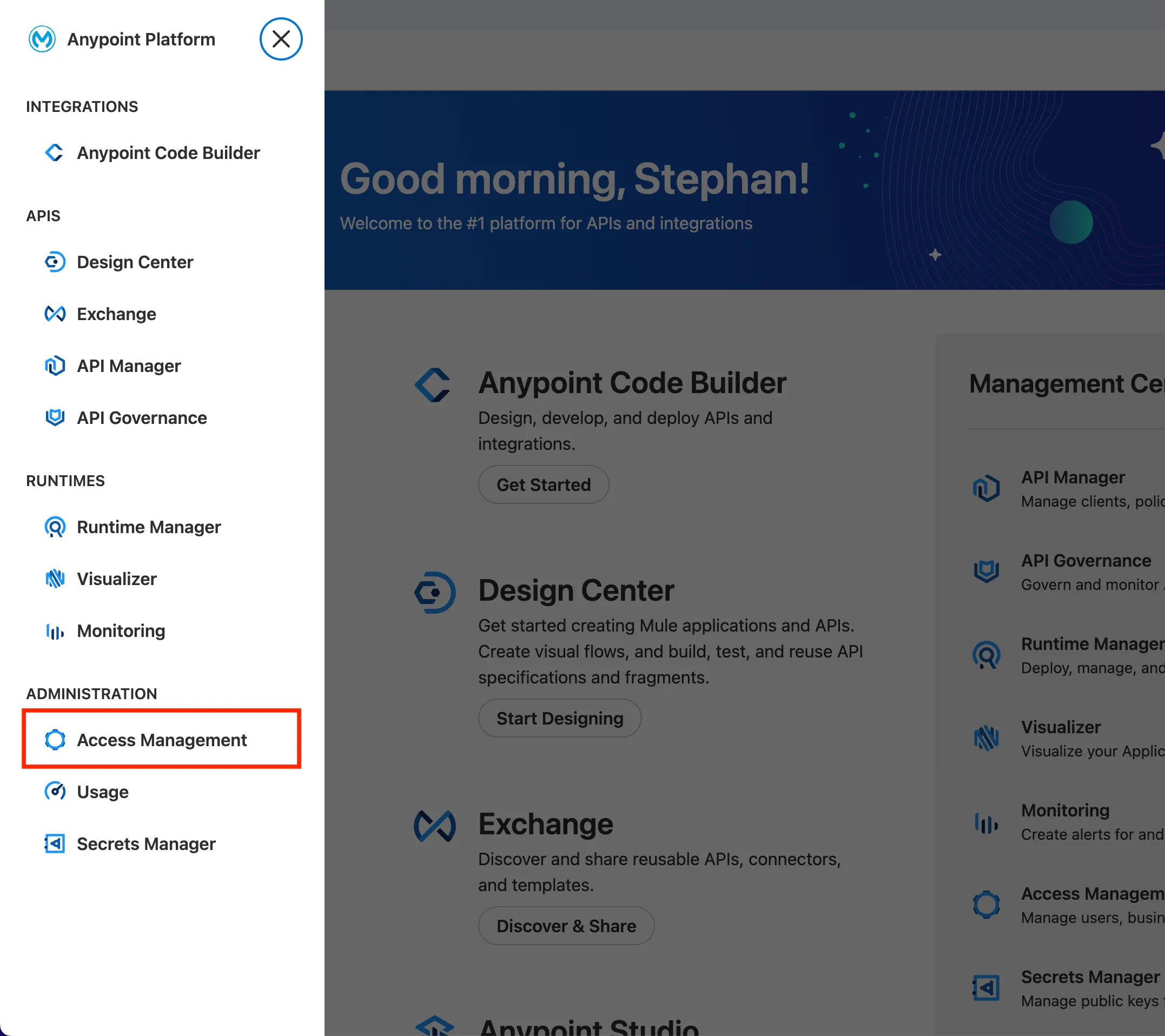 - Configuring your Anypoint user with the required Exchange, Runtime Manager and Design Center permissions