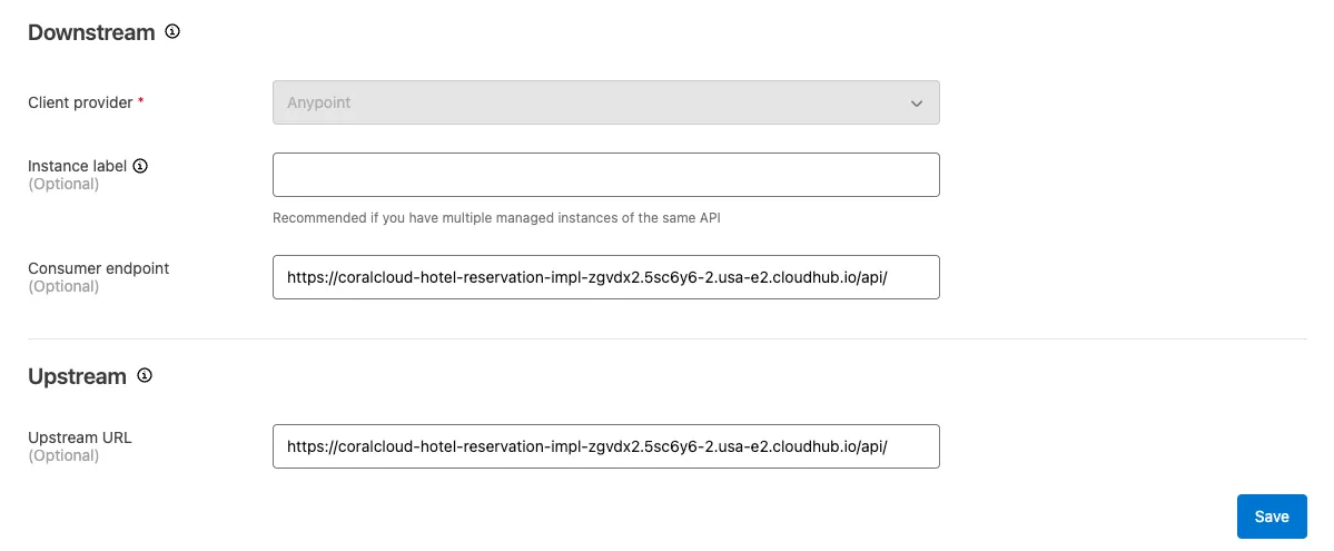 - Update both Consumer Endpoint and Upstream URL to your Public Endpoint, appending