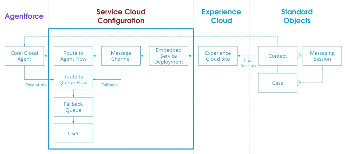 In this exercise you will configure a Service deployment that will expose the Coral Cloud Agent to your customers directly. There are quite a few pieces that need to come together to expose an agent, and this is brought together using Omni-Channel in Service Cloud.