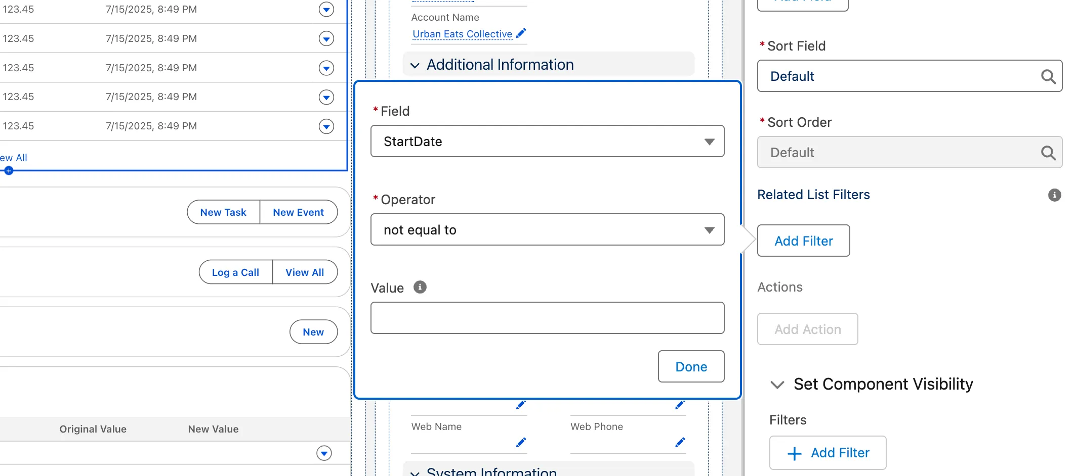 Under Related List Filters, click the Add Filter button and add the following filter: